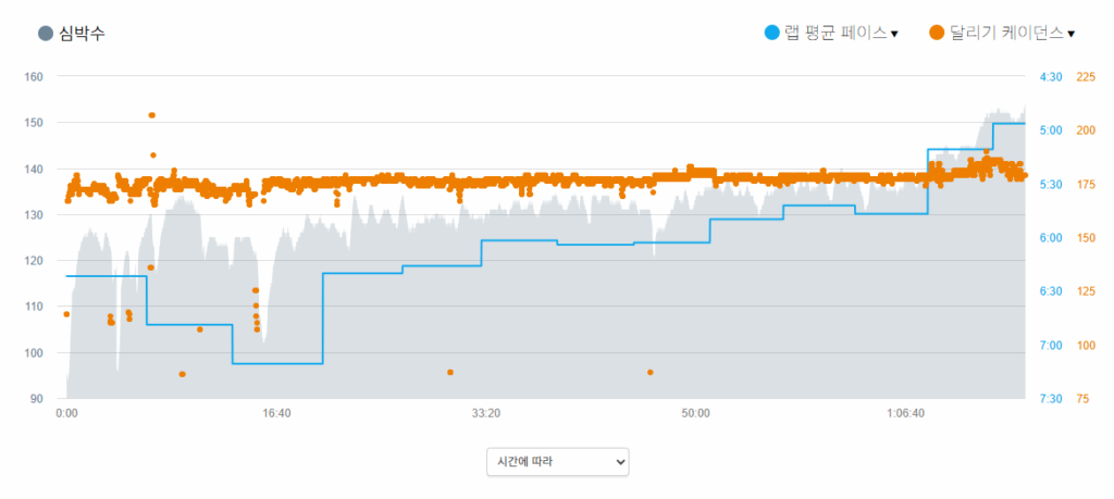 2km 부근에서는 “이러다 또 부상 오는건 아닌가?”싶어서 복귀를 고민했지만, 페이스를 더 낮추고, 보폭을 줄이고, 케이던스를 높히면서 최대한 리듬을 찾으려 노력했다.